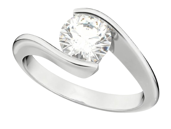 Tension settings use the metal band’s spring tension to hold stones. The gemstone appears to float between the two ends of the band. No visible prongs or bezels support the stone, hence creating a modern, dramatic appearance. Tension settings require precise engineering to work properly. Only certain gemstone shapes work well with them.